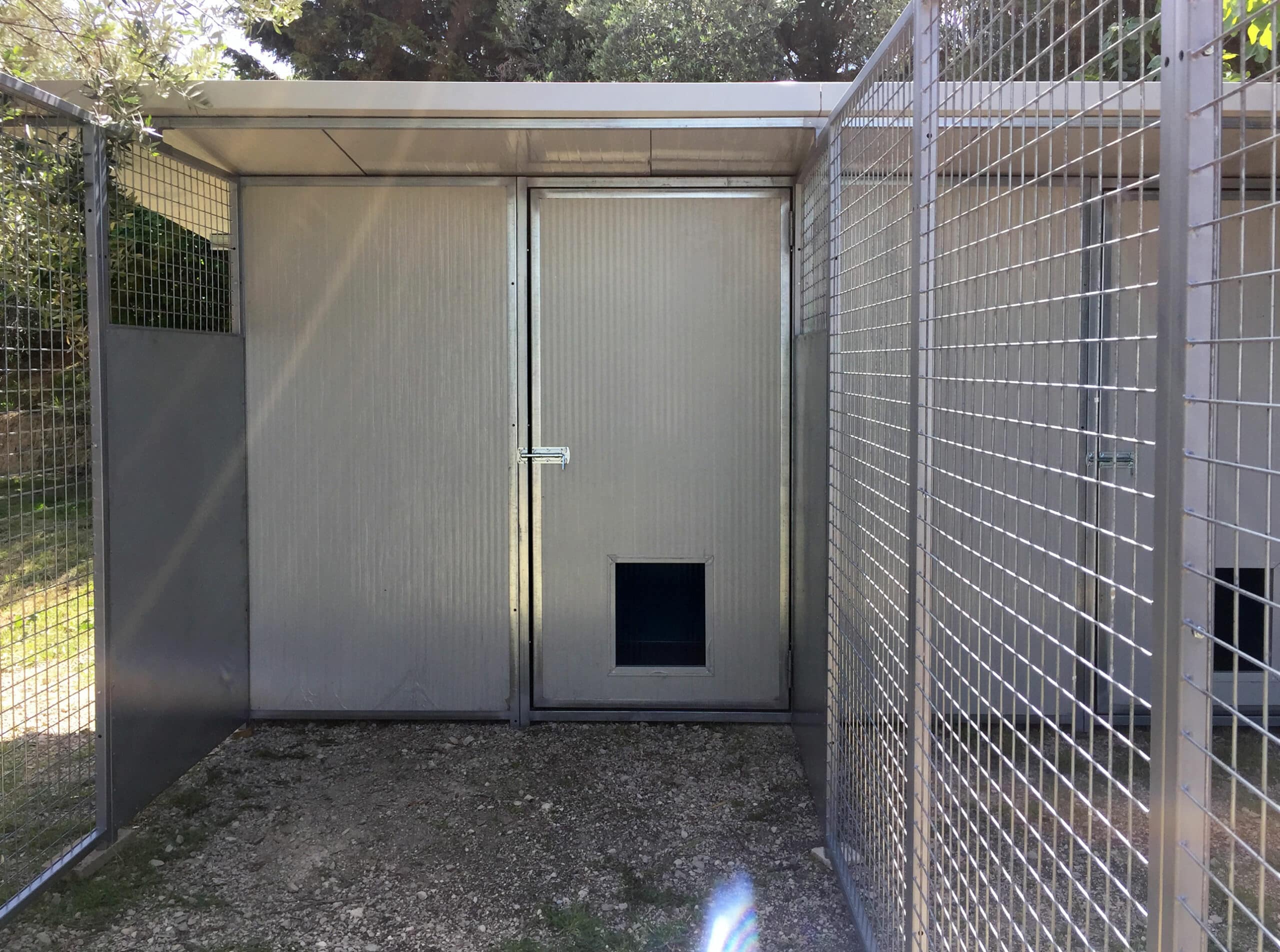 La superficie di ciascun box (10 m²), consente al cane di muoversi liberamente e di avere uno spazio adeguato per le sue esigenze quotidiane.