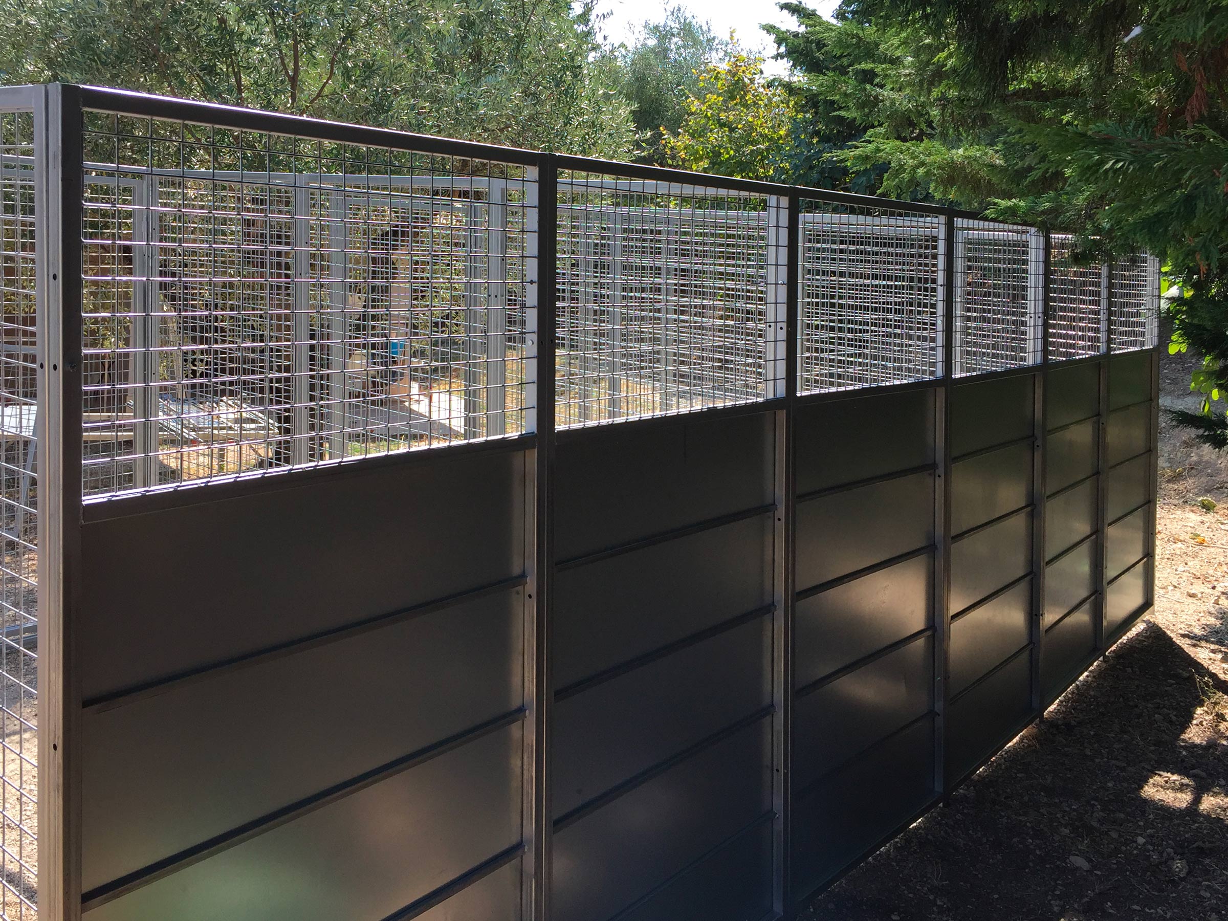 I retro dei box sono composti da pannelli semichiusi in metallo e rete.
