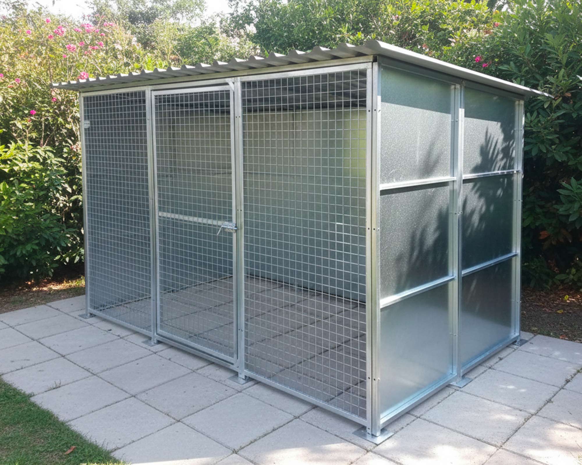 Box per cani LINEA PRO. Dimensioni box 3×2 m, altezza 199 cm.I box è composto da pannelli modulari estremamente resistenti.