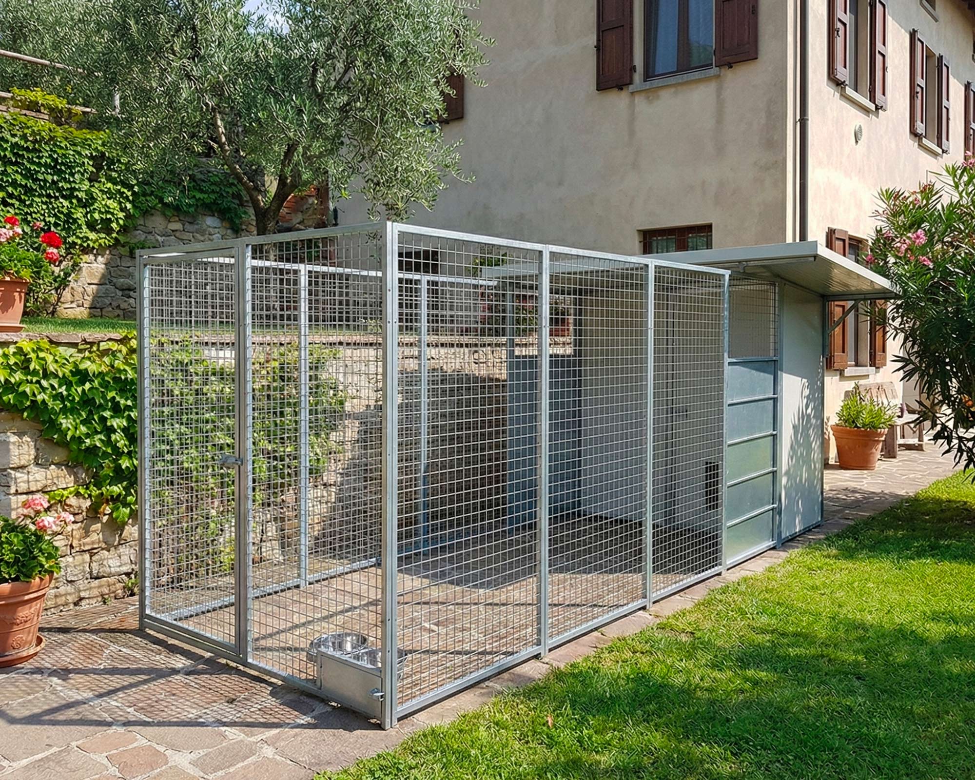 Grazie alla sua struttura modulare, il box può essere ampliato o ridotto a seconda delle esigenze. Il box è ideale per ospitare cani di taglia media, grande o gigante in modo sicuro e confortevole, offrendo un ambiente adeguato sia per la zona notte coperta, che per quella esterna del box, utile per garantire ai cani un’ottima luminosità.