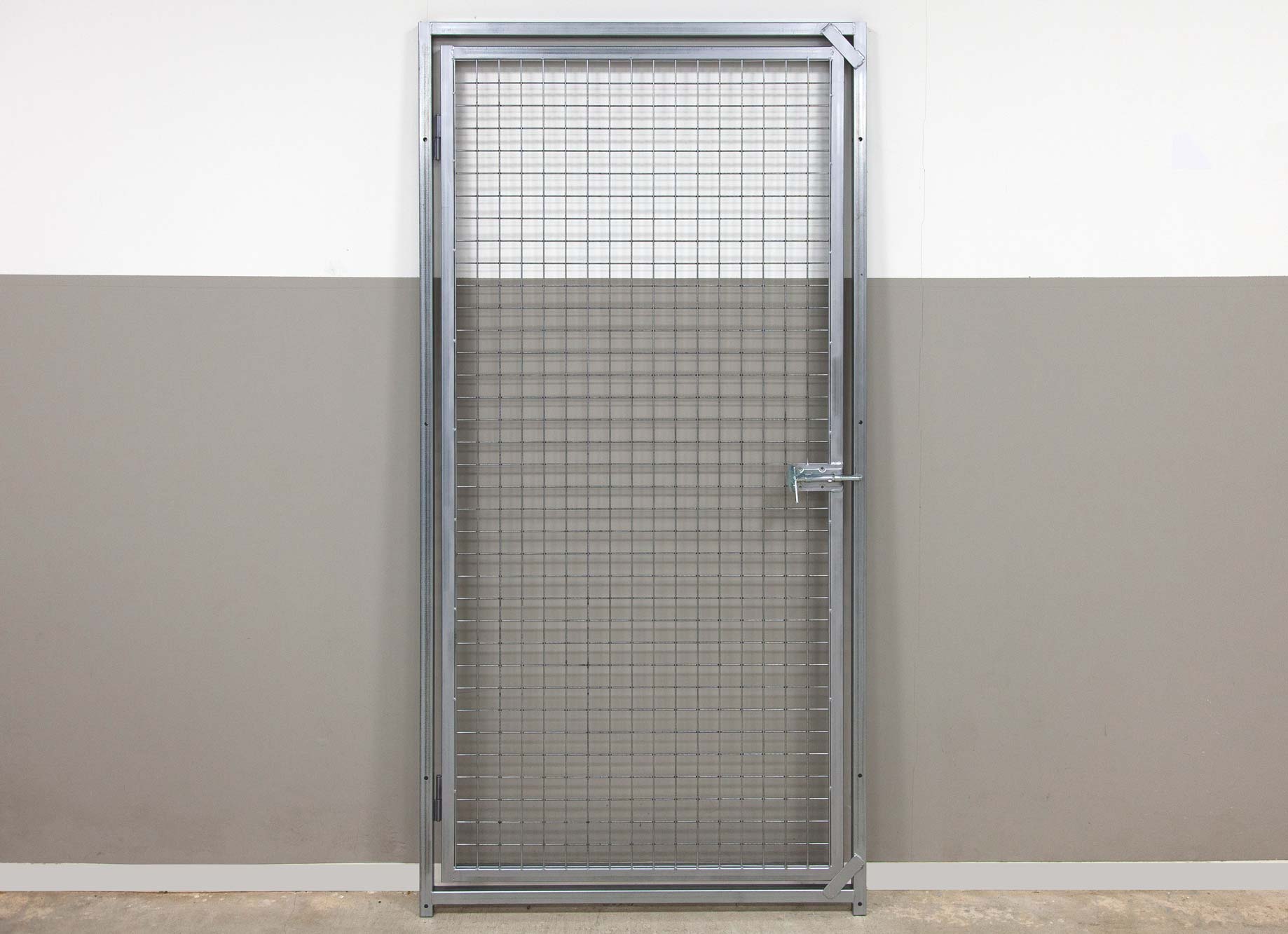Il cancello è comprensivo di telaio, chiavistello chiudibile con lucchetto e doppio fermaporta. Apertura verso l’interno con cerniere a sinistra del telaio. Dimensioni 101,5 cm di larghezza, 199 cm di altezza. Profilo scatolato 30×30 mm, spessore 2 mm. Maglia rete 5×5 cm. Filo rete 4 mm. Cancello professionale molto resistente, adatto a cani di taglia media, grande e gigante. Peso cancello 24 kg.