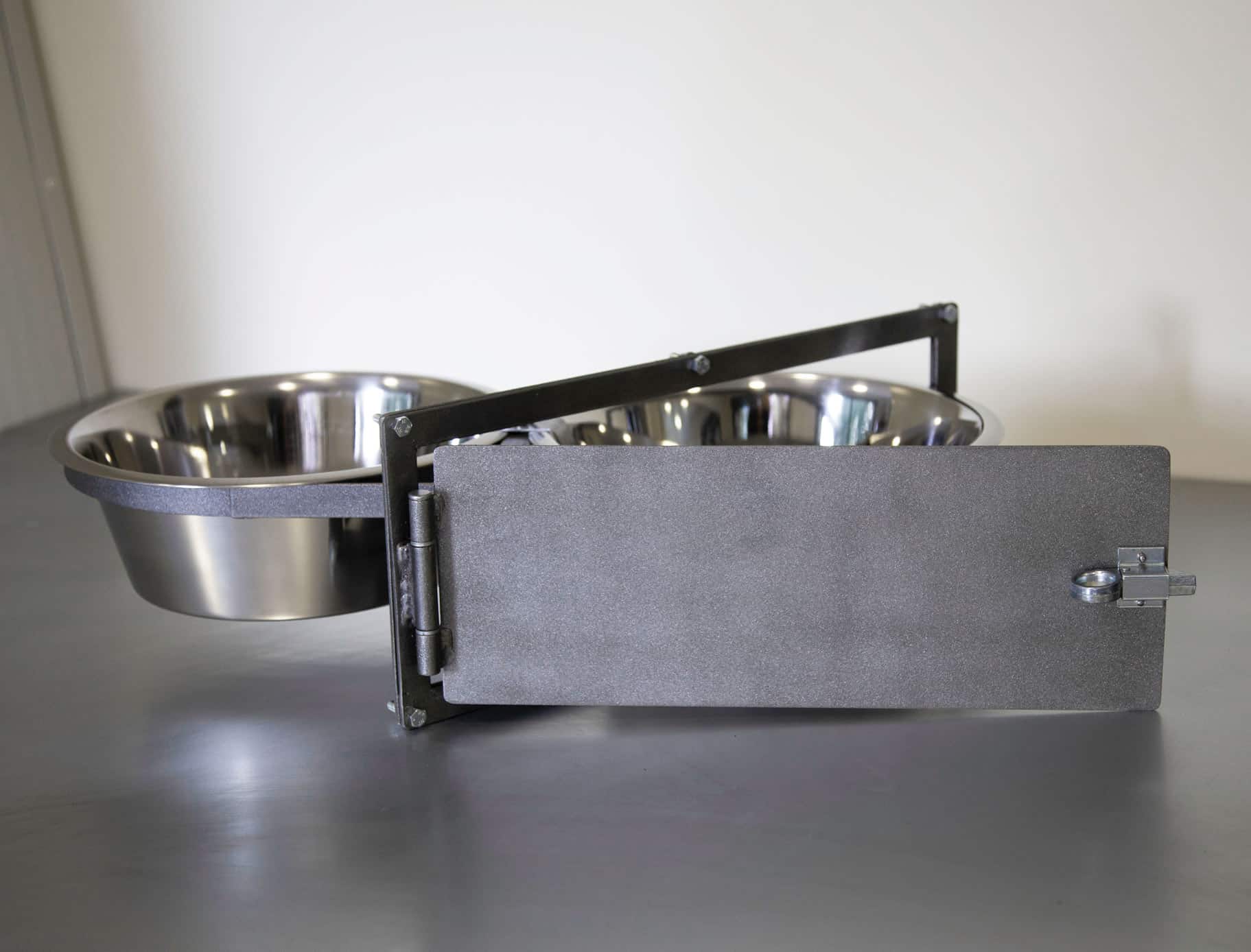 Le ciotole possono essere facilmente rimosse per la pulizia grazie a un inserto in acciaio che si svita in un attimo. Successivamente le ciotole possono essere riposizionate e bloccate saldamente dall’inserto stesso.
