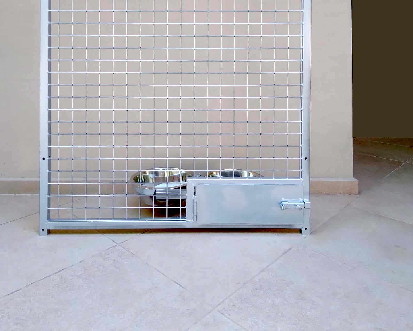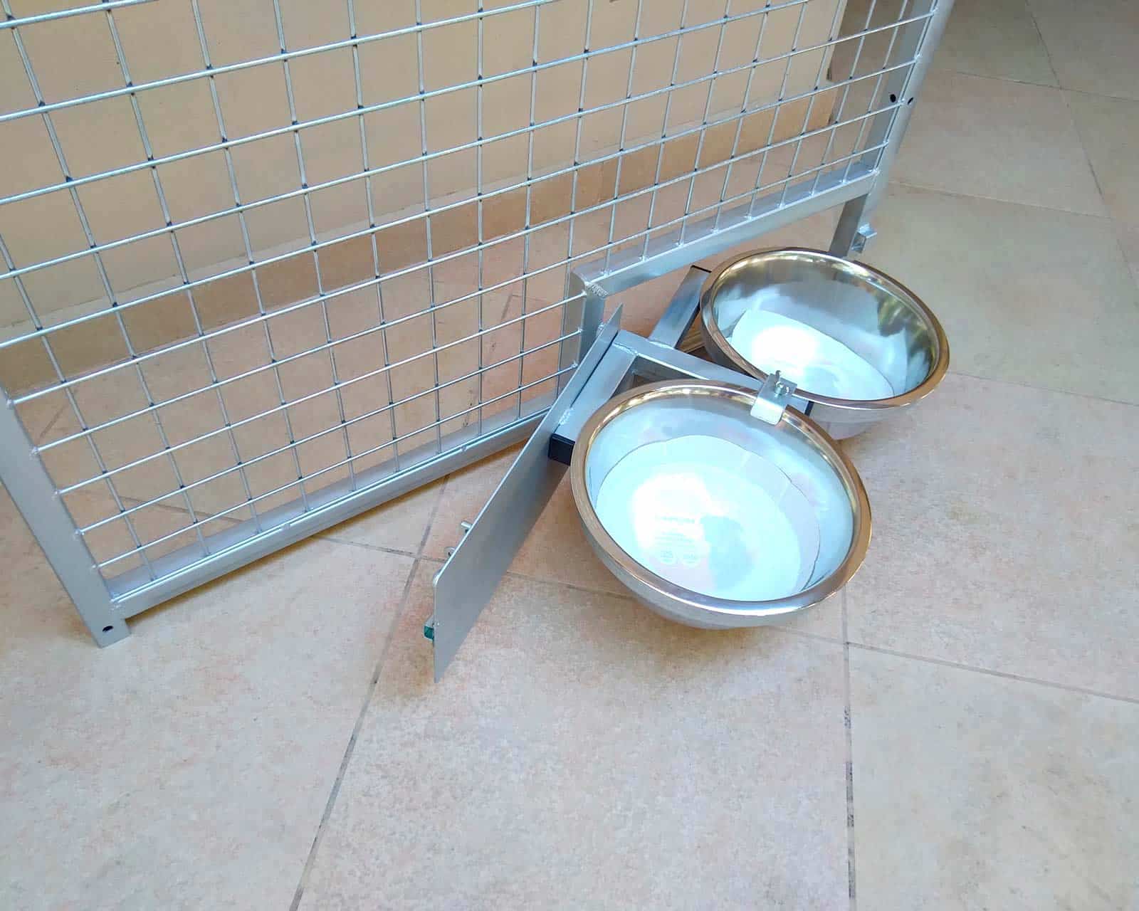 Il pannello con le ciotole girevoli incorporate, può essere integrato sia in box già esistenti, che in recinti o recinzioni. È particolarmente comodo per la gestione quotidiana dell’alimentazione, ma è indispensabile qualora si volesse delegare altra persona alla somministrazione di cibo e acqua senza dover accedere direttamente all’interno del box o del recinto.